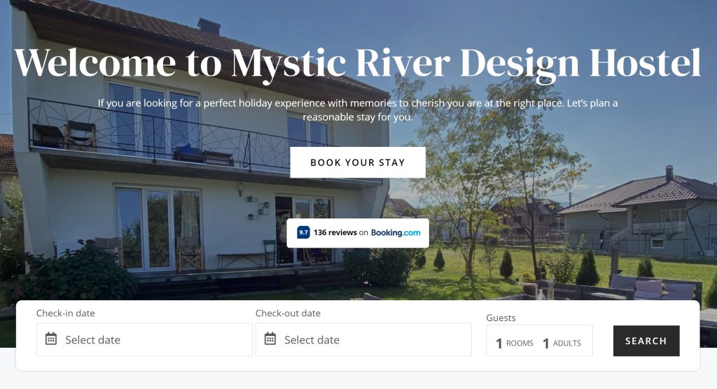 Mystic River Hostel is a hostel with a unique design, located in Bajina Basta, Serbia, close to the famous Drina River House and Tara National park. The owner wanted to have an online presence for the hostel, besides the Booking, Hostelworld, and AirBnB websites.